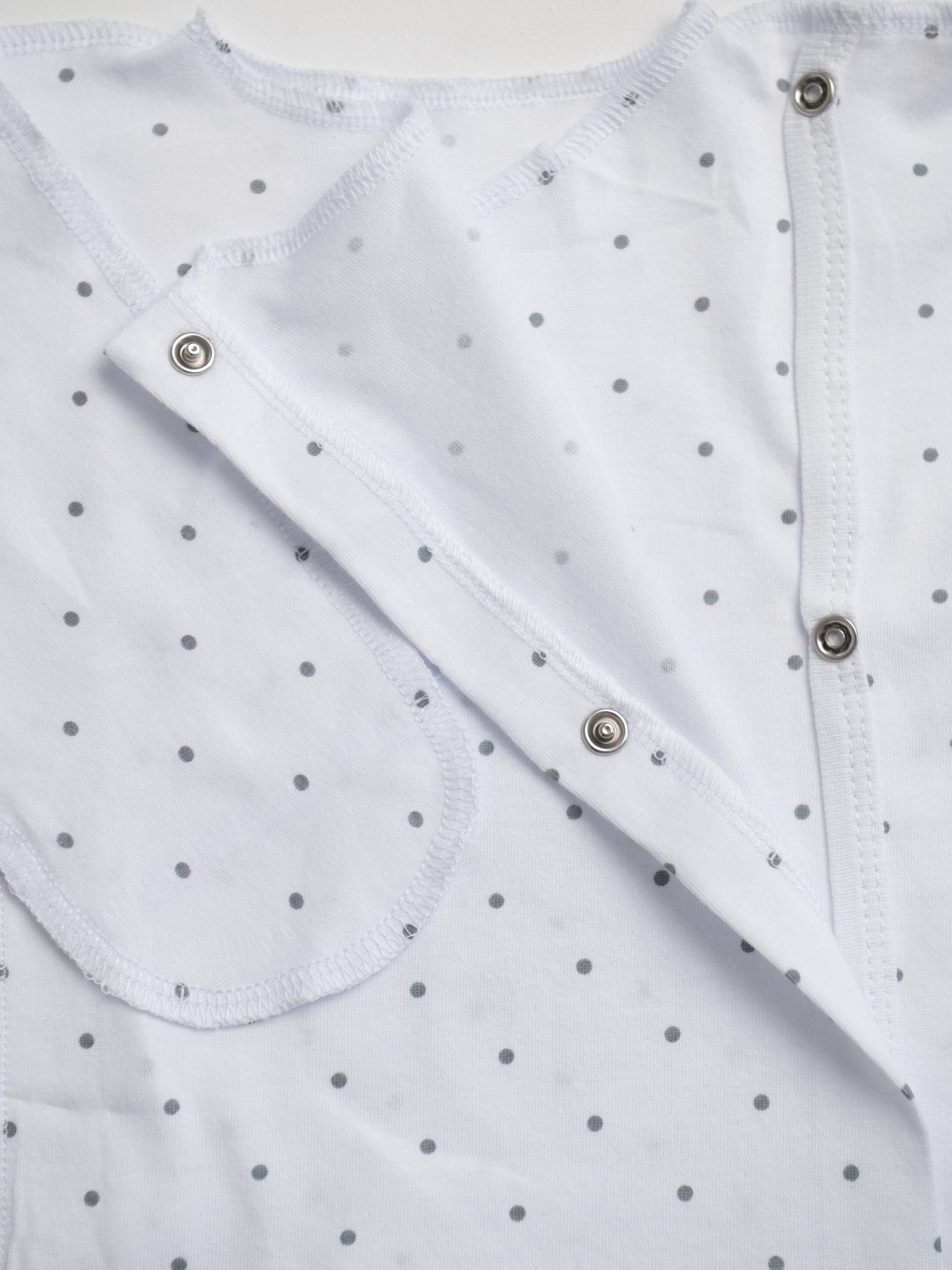 Одежда для малыша выполнена из мягкого хлопкового материала, кулирная гладь. Качественный пошив, внешние швы наружу, натуральный состав хлопок хорошо впитывает влагу и пропускает воздух. Свободный фасон не сковывает движений младенца, длинный рукав, рукавички антицарапки закрываются на конце рукавчика. Кнопки расположены так, чтобы не контактировать с телом ребенка. Горловина и нижняя часть окантована мягкой хлопковой рибаной.